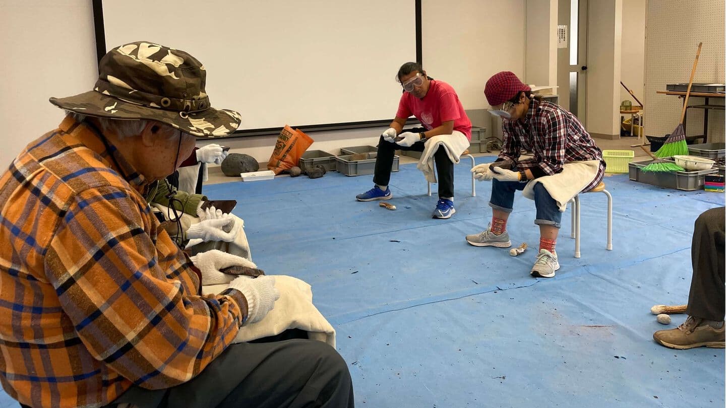 なんと黒曜石の石器づくり体験でした!
